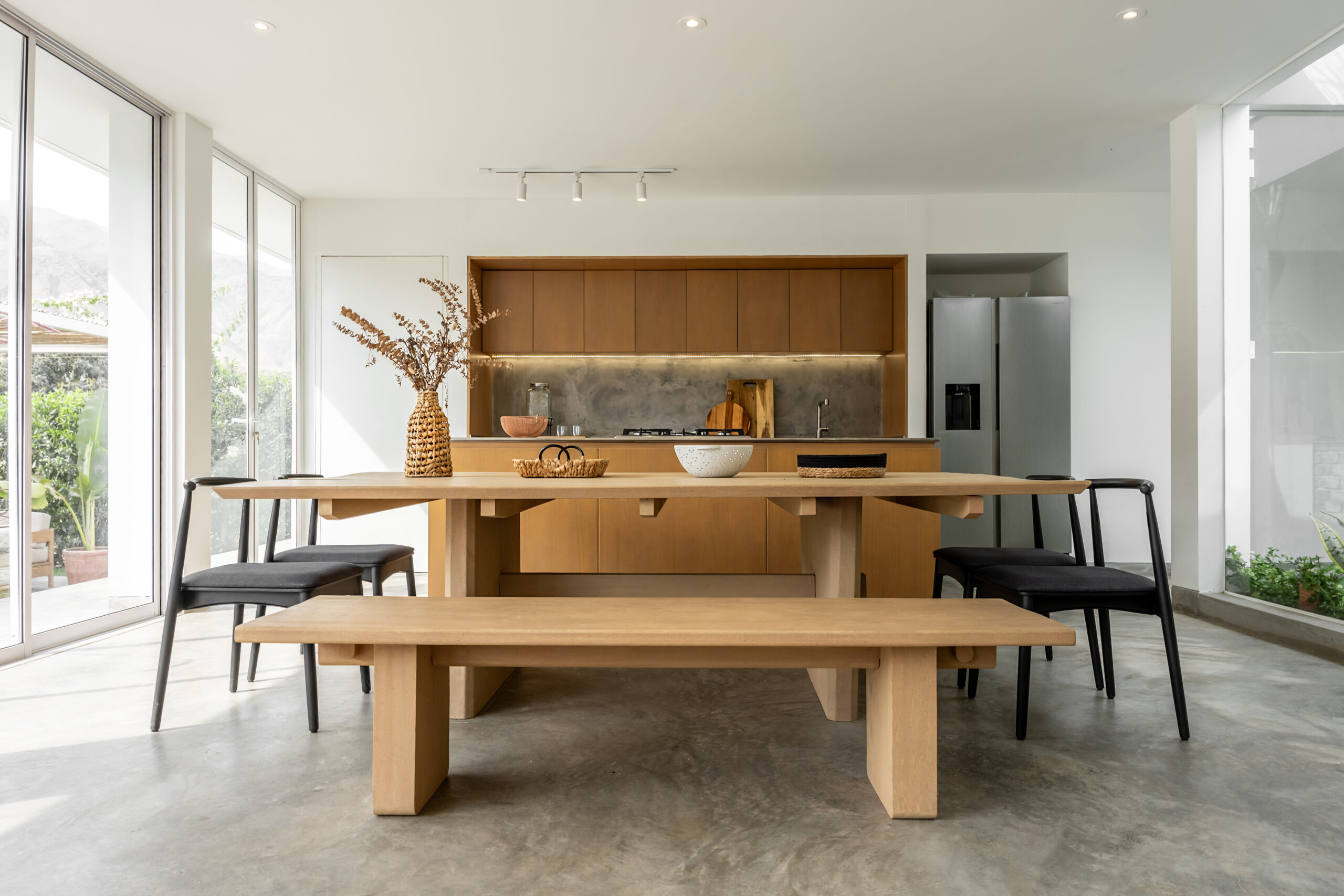 La cocina, sin extravagancias innecesarias, se presenta como un espacio lineal y limpio. Los dormitorios, a su vez, ofrecen un refugio, priorizando la funcionalidad sobre la ornamentación.